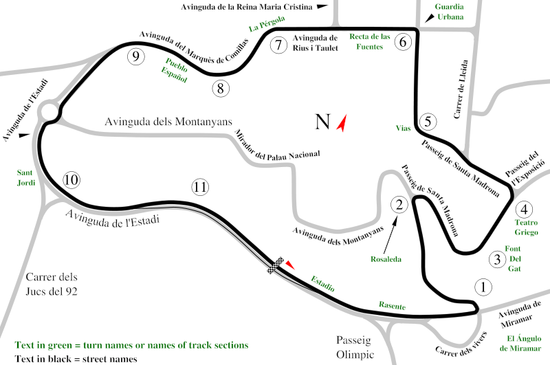 Although there a race ran around the parks and harbour of Montjuïc Park in 1932, it would not be until a year later when the Penya Rhin Grand Prix took place, that a major race ran around the mountainside street circuit.