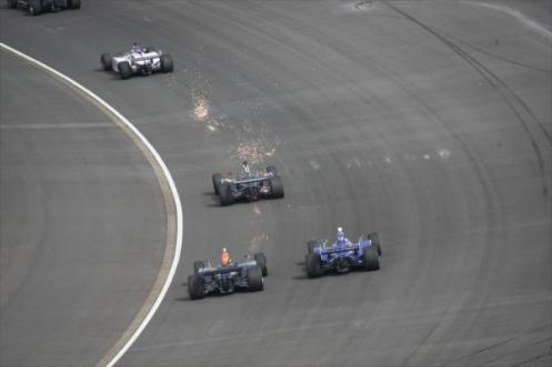 Two of Patrick’s Andretti-Autosport team mates were still in a battle with Scott Dixon for lower positions, as the Ganassi man fought Kanaan and Hunter-Reay over 6th spot. The final Andretti-Autosport driver, Marco Andretti, was losing his battle for 10th spot with Panther Racing’s Dan Wheldon – both of whom had virtually invisible races.