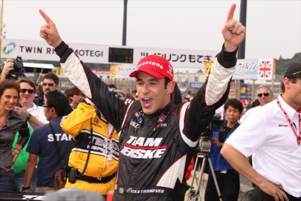 The Brazilian had secured his second pole position of the season (the first being Indianapolis) and on race day in Japan, Castroneves ran off into the distance claiming the victory, fastest lap and most laps led – it was quite simply an awe inspiring drive in a race that stuttered with caution periods aplenty. The third Penske of Ryan Briscoe took to the outside of the first row, while the title fighting had the second row all to themselves.