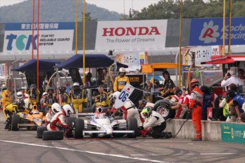 Dixon’s battle with Tony Kanaan went to line, with the veteran Kanaan claiming 7th, but a late race dash by Graham Rahal brought him a very good 8th place. Hunter-Reay fell to 9th in the final few laps, finishing only 0.2 of-a-second ahead of Wheldon at the line – the final Andretti-Autosport car with Marco Andretti was 11th at the flag. Takuma Sato ran to a solid, if unspectacular 12th in his first race in Japan since his outing at Suzuka in 2007, as he just followed Andretti across the line.