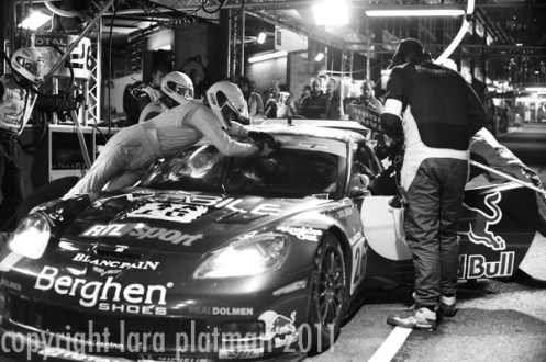 While at the Spa 24 Hours last week, Lara Platman shot some rather fabulous photographs during the night of crews and drivers at work within the pitlane’s tight confines.