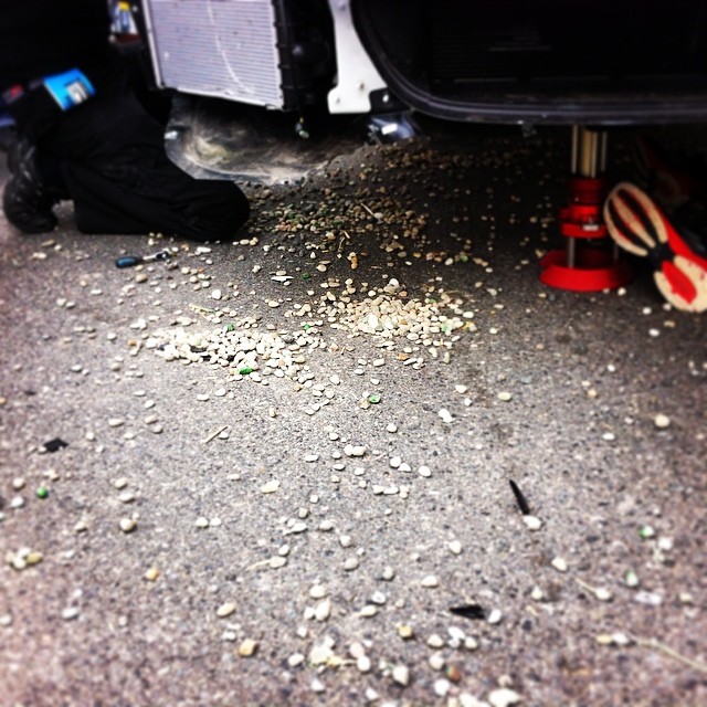 If nothing else for the crews, it means a lengthy session pulling the underside of the car apart, clearing a turgid mixture of dirt, dust, muck and stones from the slightly wounded machine.